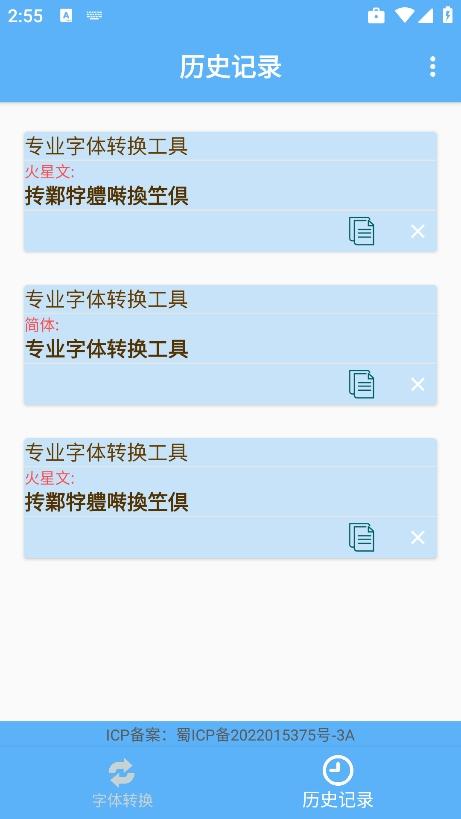 3、通过历史记录,我们可以查看所有转换的字体内容。