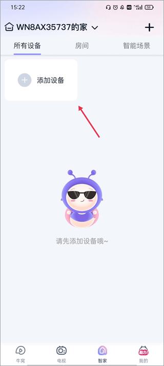 1、用本地手机号登录软件,点击跳转到“智家”这个界面。