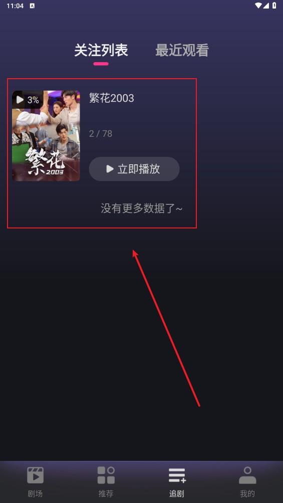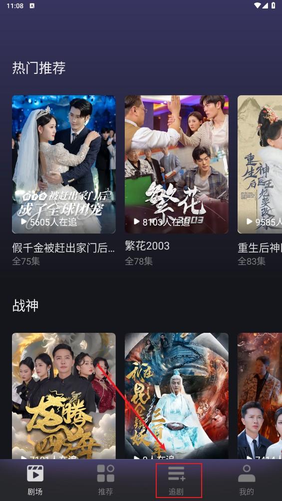 3、在"追剧"板块就可以看见收藏的目标短剧了。