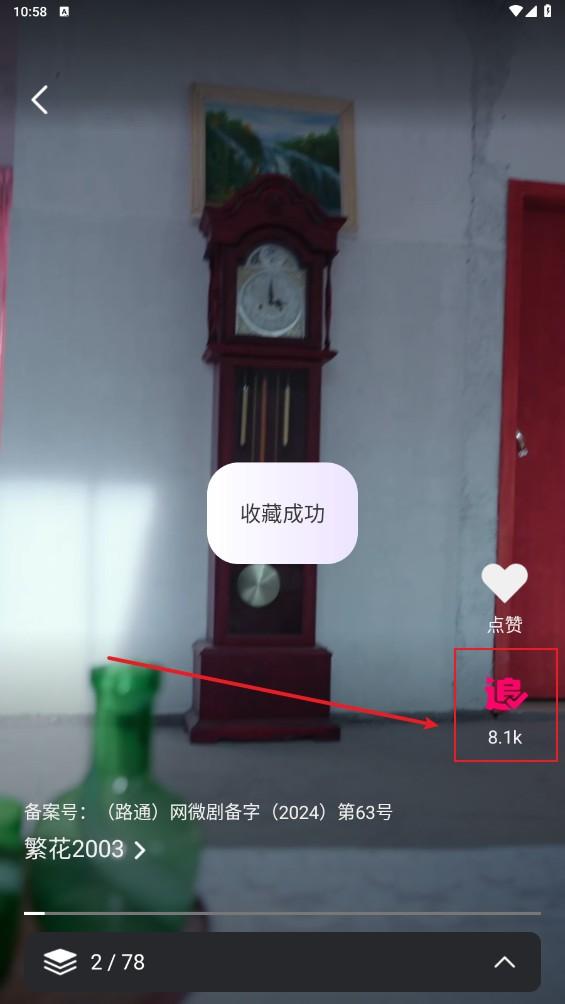 2、进入播放界面,点亮"追剧"按钮,即可收藏成功。