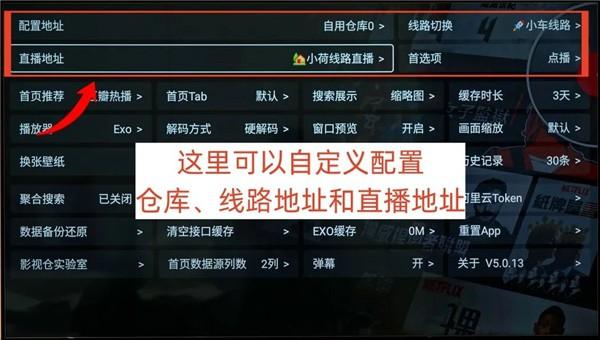 1、在影视仓的设置里面可以进行自定义设置,包括单独配置直播地址和线路地址,若无需要,保持默认设置即可。