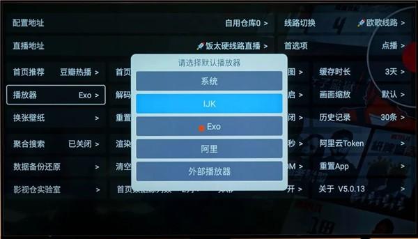 3、另外,在播放器设置这里,默认是Exo播放器,如果经常看直播的话,可以更换IJK播放器,因为Exo在直播方面稍微差一点,不过日常观影的话,可以选择Exo播放器。