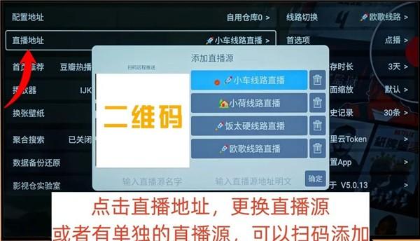 2、需要注意的是,在设置里手动选定直播地址之后,再更换仓库和线路不会改动直播地址,所以想要换个直播源,就需要手动去设置里去切换。